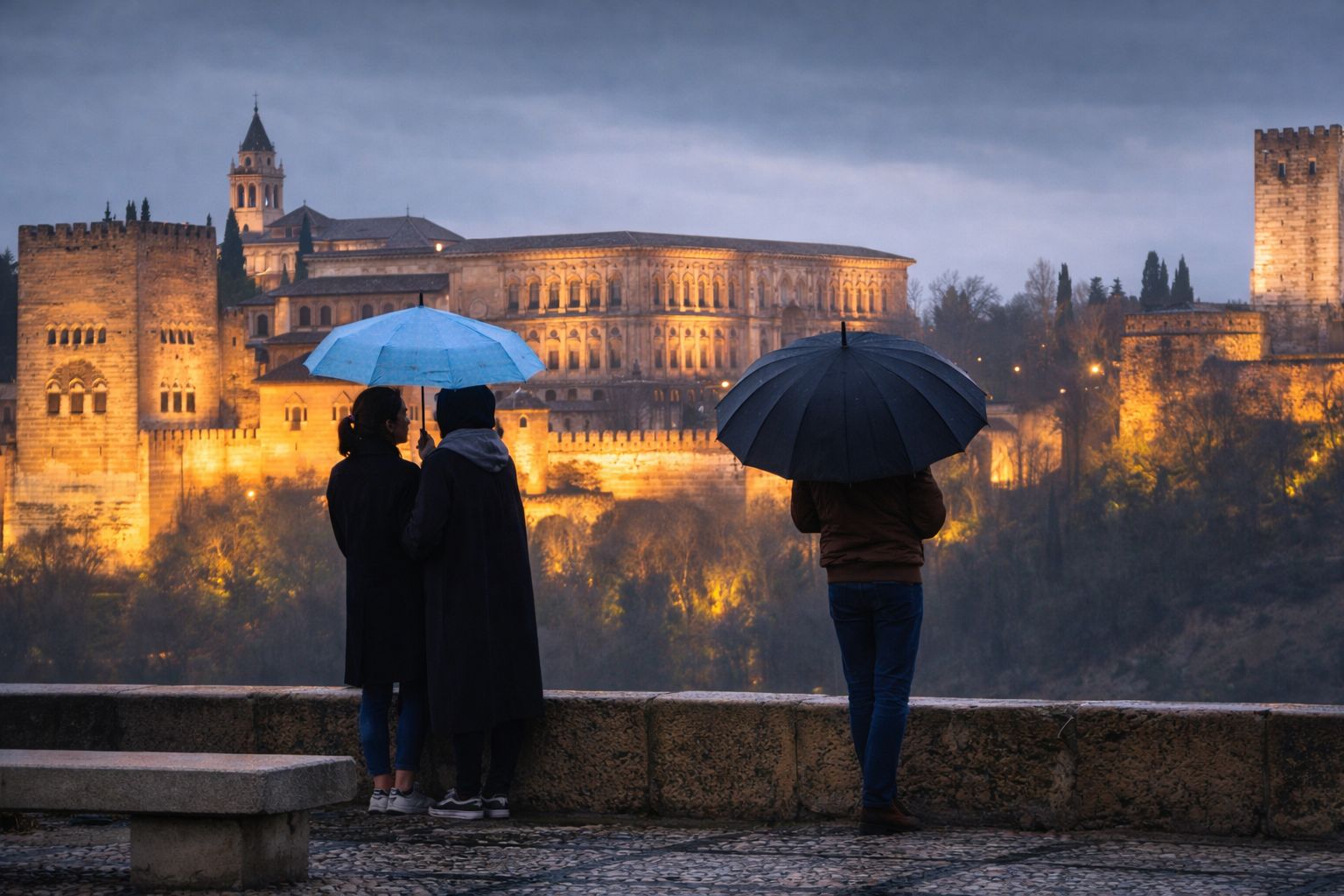 Aunque muchos pensamos en Granada como destino soleado, la ciudad también despliega su magia cuando el cielo se nubla, llueve